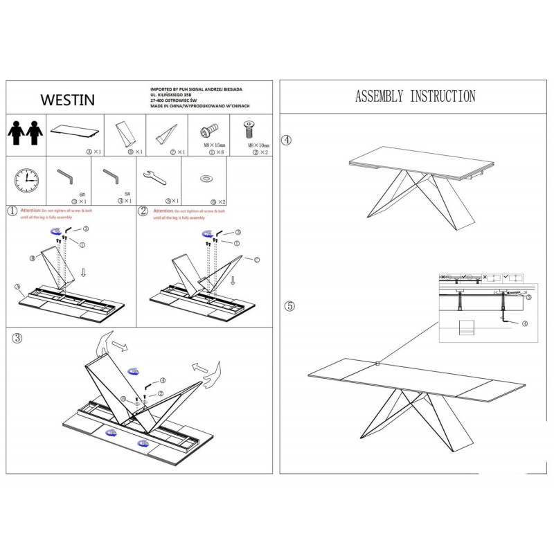 Стол обеденный SIGNAL WESTIN 160 раскладной, черный матовый, 160-240/90/76