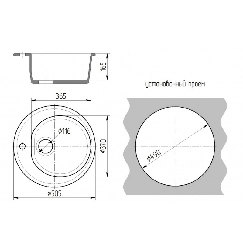 - Форма мойки:круглая